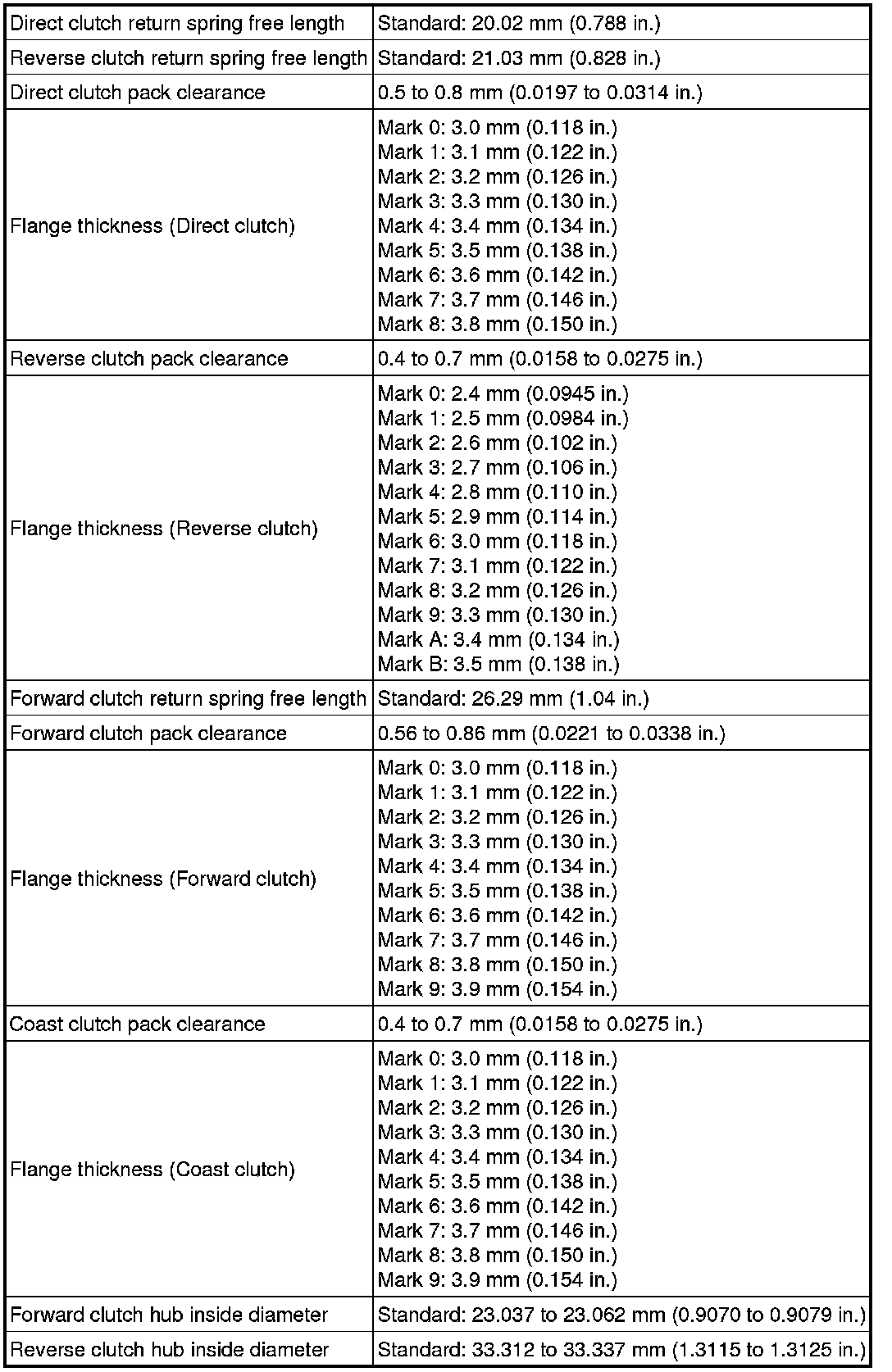 * All shift point values indicated in the above tables are actual values. Therefore, if checking a shift point with a chassis dynamometer, keep in mind that there is a range of error in the chassis dynamometer indication.