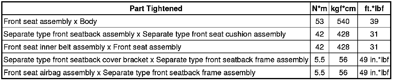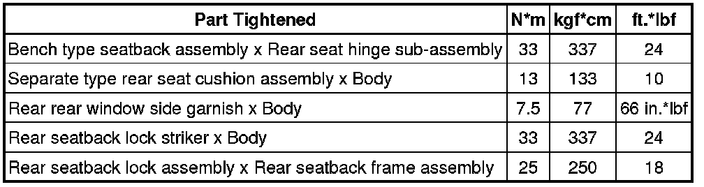SPECIFICATIONS: SEAT: TORQUE SPECIFICATIONS; 2013 MY FR-S [03/2012 -]