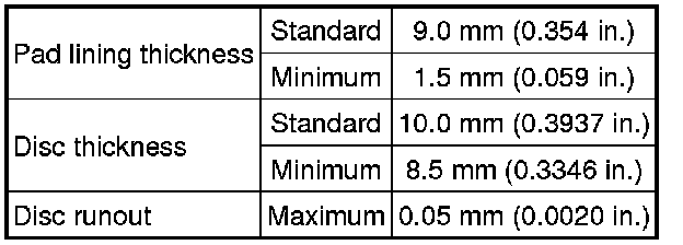 SPECIFICATIONS: BRAKE (REAR): SERVICE DATA; 2013 MY FR-S [03/2012 -]