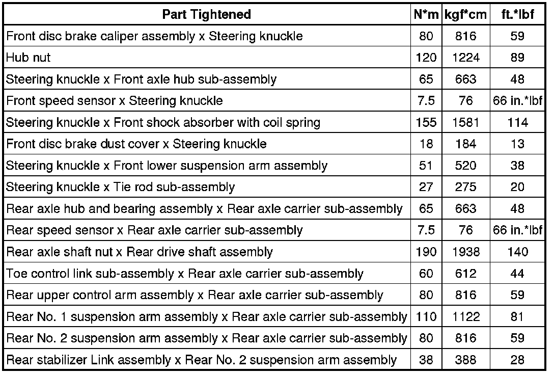 SPECIFICATIONS: AXLE AND DIFFERENTIAL: TORQUE SPECIFICATIONS; 2013 MY FR-S [03/2012 -]