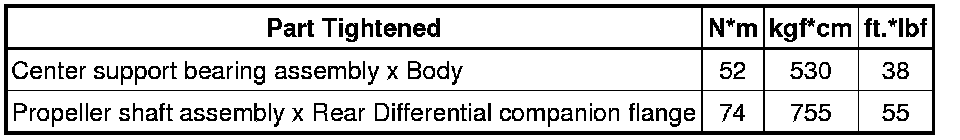 SPECIFICATIONS: DRIVE SHAFT / PROPELLER SHAFT: TORQUE SPECIFICATIONS; 2013 MY FR-S [03/2012 -]