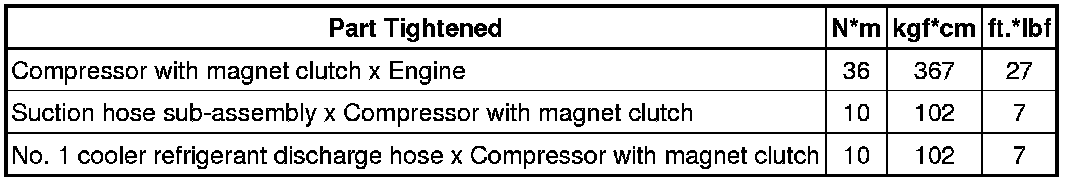 SPECIFICATIONS: HEATING / AIR CONDITIONING: TORQUE SPECIFICATIONS; 2013 MY FR-S [03/2012 -]