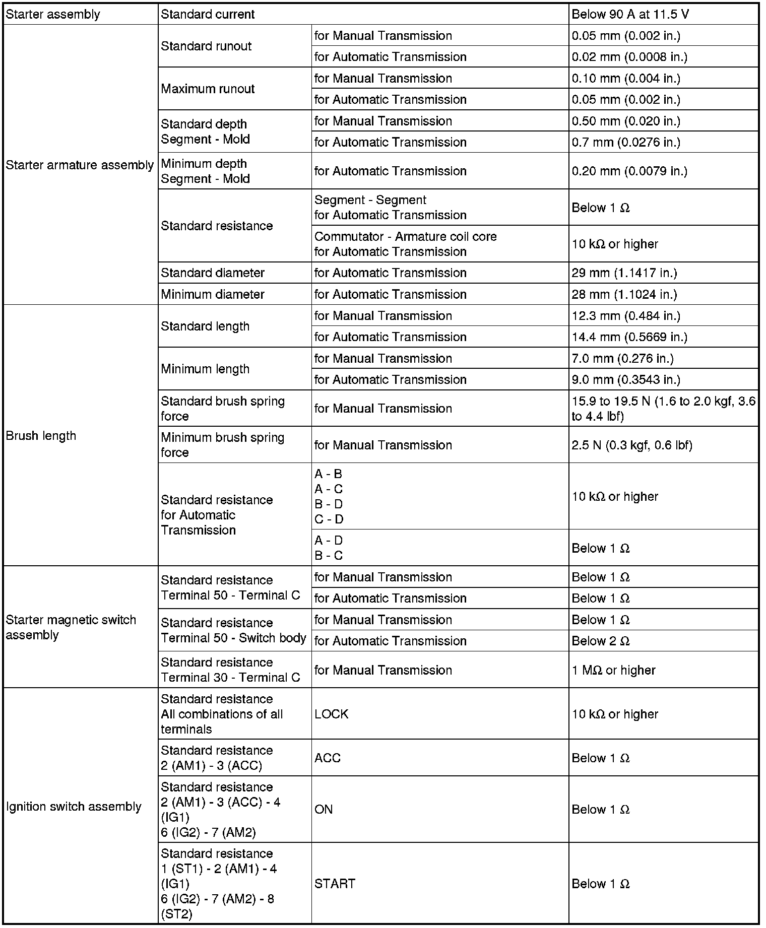 SPECIFICATIONS: FA20 STARTING: SERVICE DATA; 2013 MY FR-S [03/2012 -]