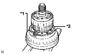 (a) Place the oil pump assembly onto the torque converter assembly, and then place the clutch drum and input shaft assembly onto the oil pump assembly.