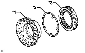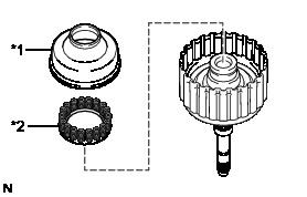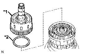 (a) Remove the No. 2 one-way clutch assembly and the input shaft clutch drum thrust washer from the clutch drum and input shaft assembly.