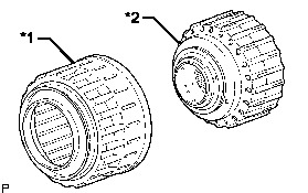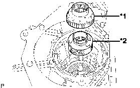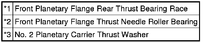 (b) Remove the front planetary flange rear thrust bearing race, front planetary flange thrust needle roller bearing and the No. 2 planetary carrier thrust washer from the automatic transmission case sub-assembly.