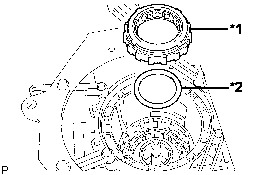 (a) Remove the one-way clutch assembly and the No. 1 planetary carrier thrust washer from the automatic transmission case sub-assembly.
