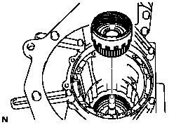 (b) Remove the center planetary ring gear from the front planetary ring gear.