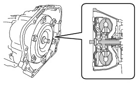 * If the transmission is installed to the engine with the torque converter not sufficiently inserted, the torque converter may be damaged.