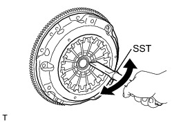 (a) Insert SST into the clutch disc assembly, and then insert them both into the flywheel sub-assembly.