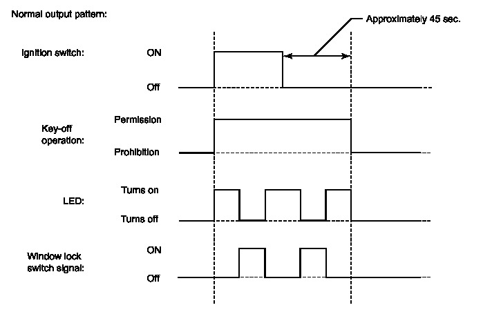 During initialization of the power window regulator motor ECU, when the window position or initialization complete status cannot be properly read from the EEPROM, the power window control system prohibits the operations as follows: