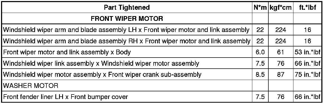 SPECIFICATIONS: WIPER / WASHER: TORQUE SPECIFICATIONS; 2013 MY FR-S [03/2012 -]