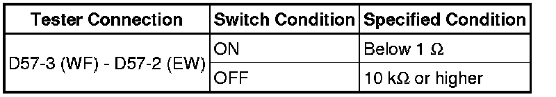 If the result is not as specified, replace the windshield wiper switch assembly.