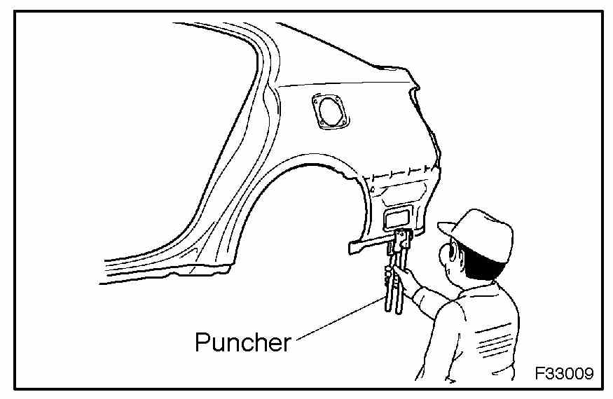 1. For areas where a spot welder cannot be used, use a puncher or drill to make holes for plug welding.