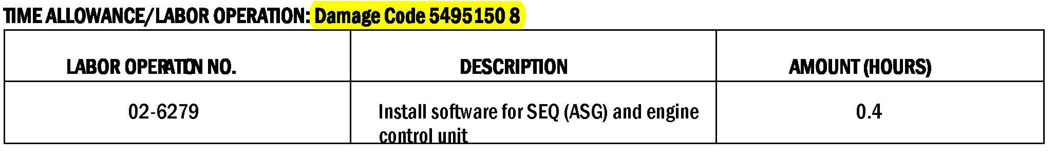TIME ALLOWANCE/LABOR OPERATION: Damage Code 54951508