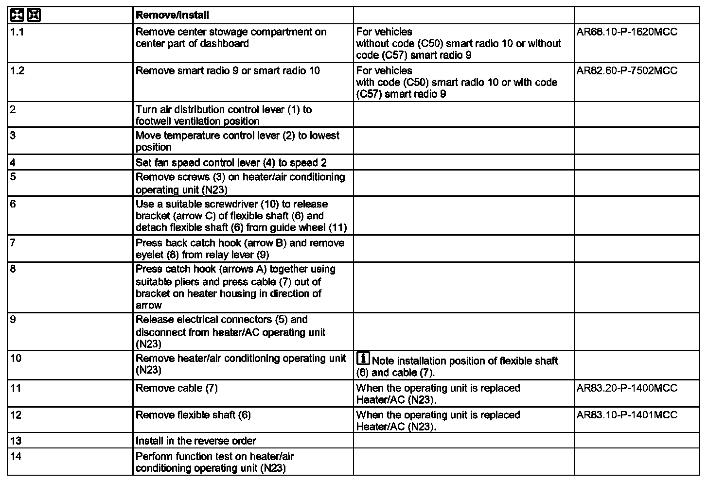AR83.20-P-1850MCC Remove/Install Heater/Ventilation Operating Unit