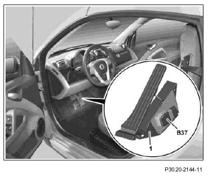 The accelerator pedal sensor is located on the right on the accelerator pedal module.