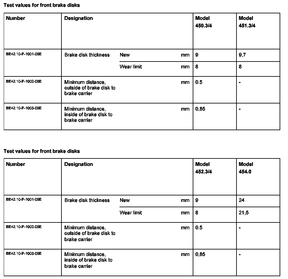 BE42.10-P-1000-08E Test Values For Front Brake Disks