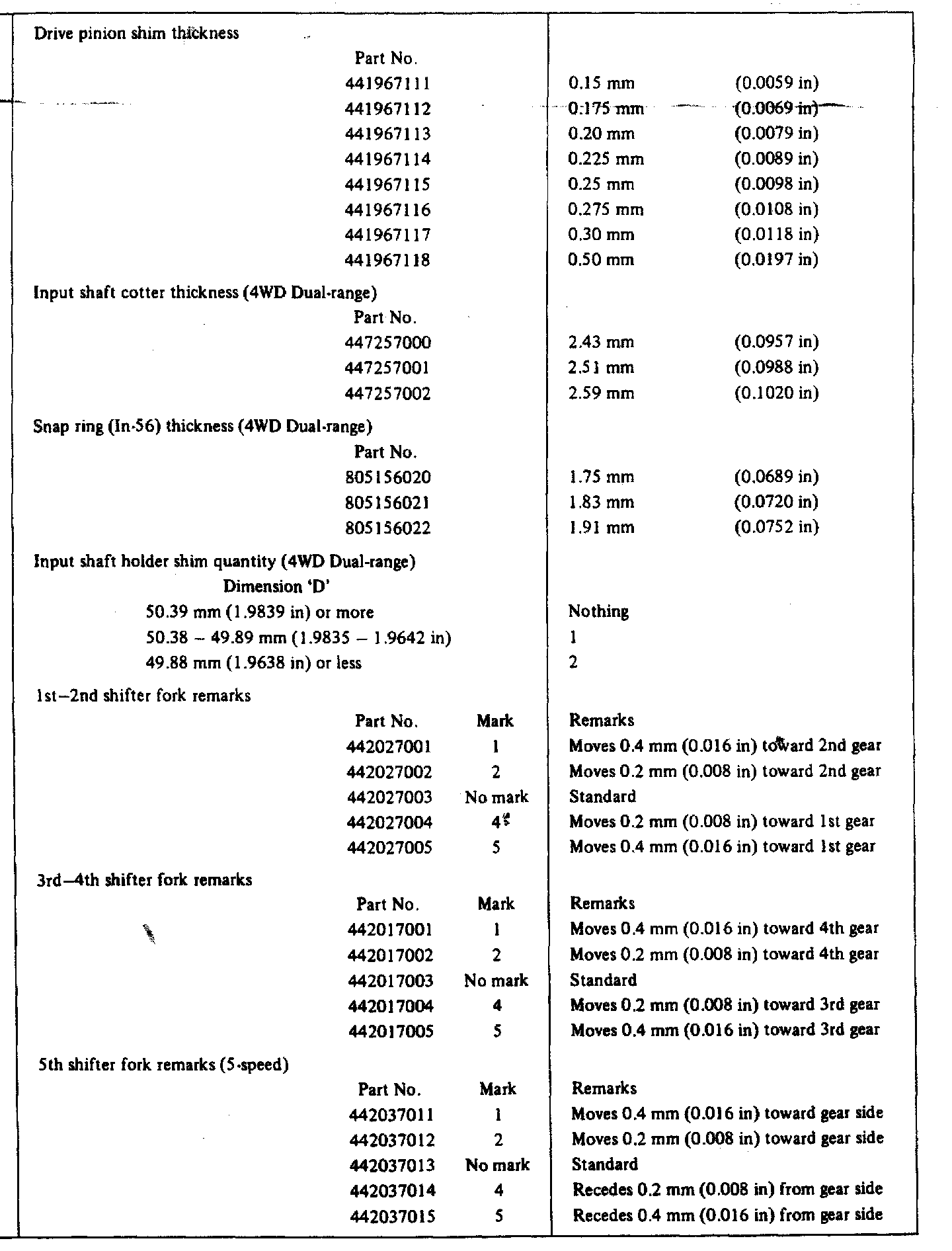 4/5 Spd M/T, Clutch & Transmission Clearances/Tolerances: