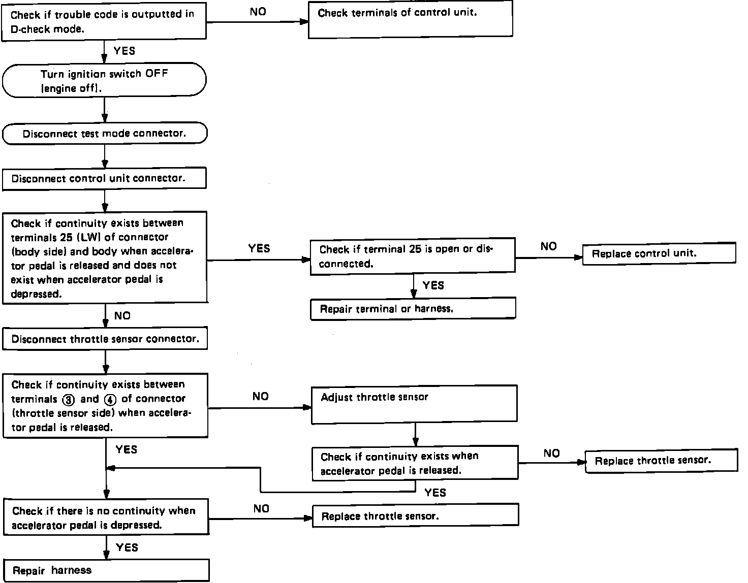 A faulty idle switch will set code 42 in the on-board diagnostic system. Refer to the schematic diagram and test the switch with the diagnostic chart.