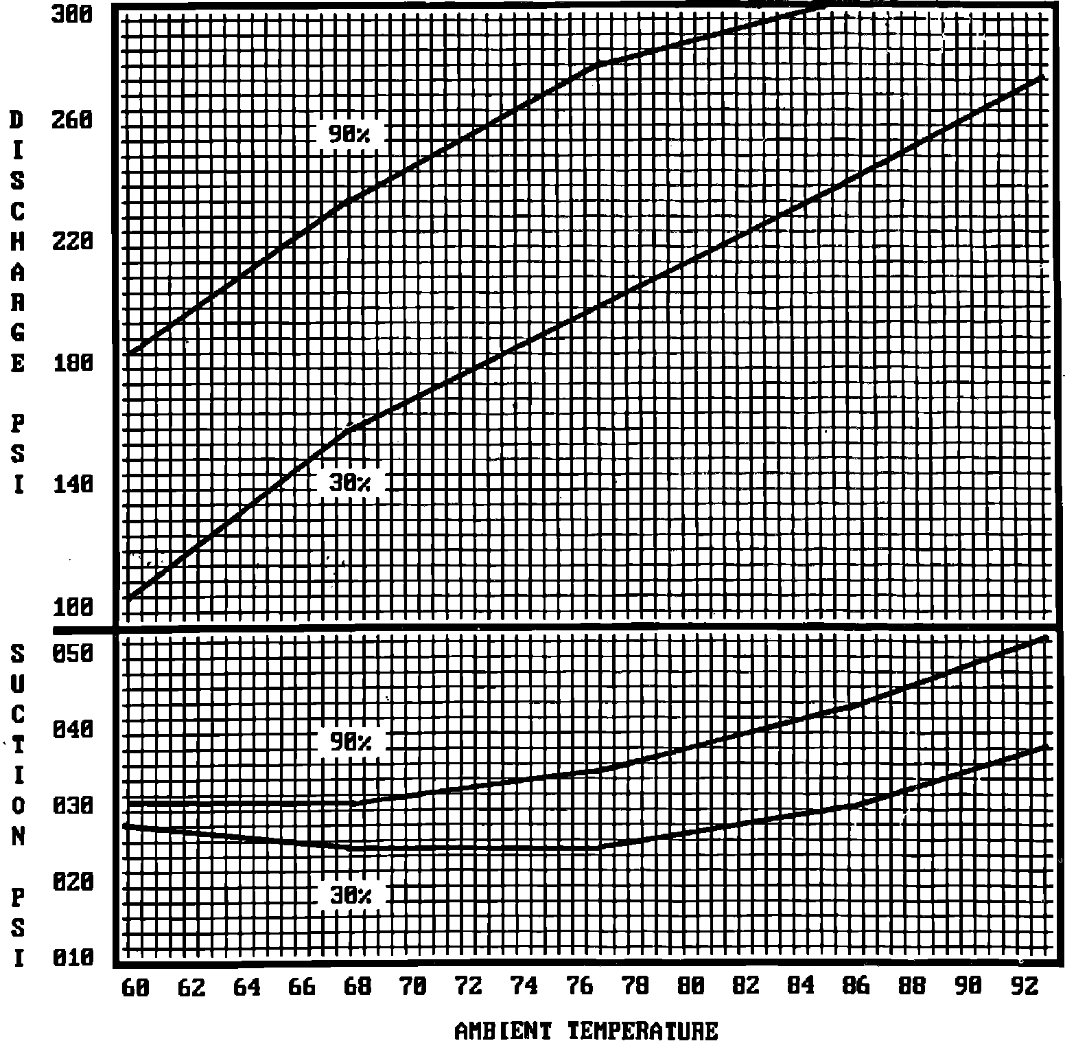 --> DISCHARGE (HIGH) SIDE PRESSURE SHOULD BE ABOVE 100 PSI