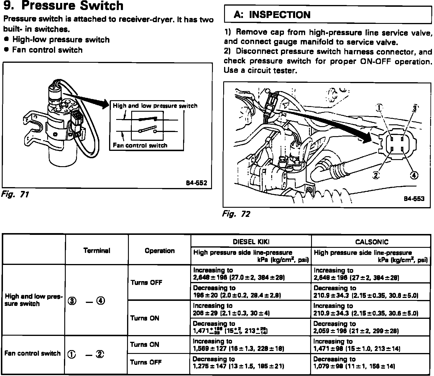 Refrigerant Pressure Sensor / Switch: Testing and Inspection