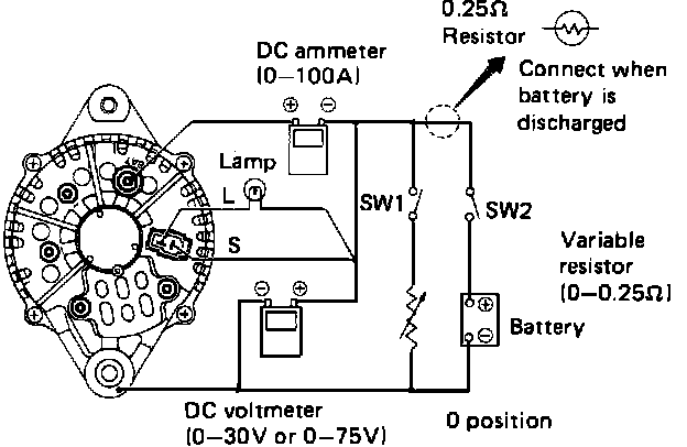2. Open switch SW1 and close switch SW2, then operate alternator test stand.