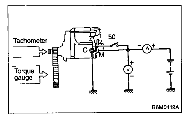 The starter is required to produce a large torque and high rotating speed, but these starter characteristics vary with the capacity of the battery. It is therefore important to use a battery with the specified capacity whenever testing the starter.