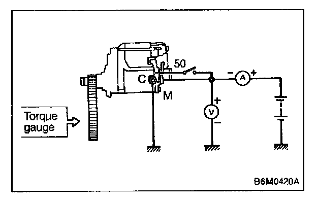 Connect two battery negative leads onto magnetic switch body and terminal C respectively. Then connect battery positive lead onto terminal 50. Pinion should extend when lead connections are made.