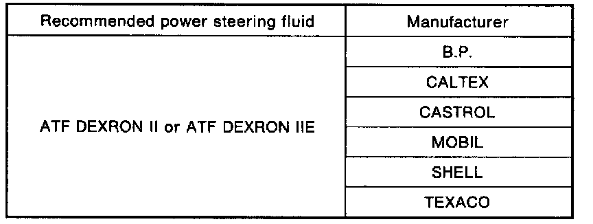 RECOMMENDED AIR BLEEDING AND POWER STEERING FLUID