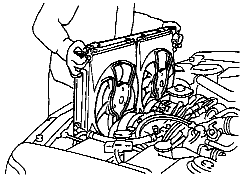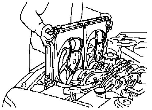 14) Lift radiator up and away from vehicle.