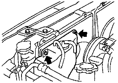 9) Disconnect Automatic Transmission Fluid (ATF) cooler hoses from radiator. (AT vehicles)
