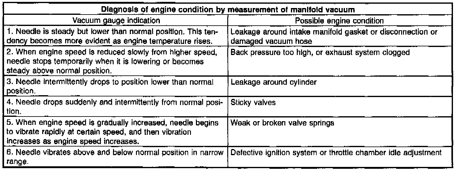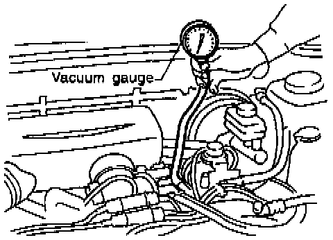 1) Warm-up the engine.2) Disconnect the brake vacuum hose and install the vacuum gauge to the hose fitting on the manifold.