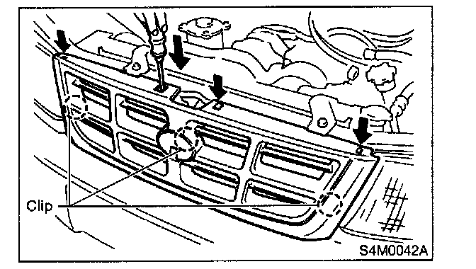 NOTE: After installing condenser, ensure that guide on lower side of condenser is inserted into hole in radiator panel. Tighten attaching bolts.