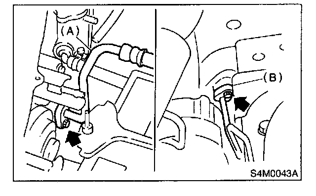 5. Disconnect high-pressure hose (A) and high-pressure pipe (B) from condenser.