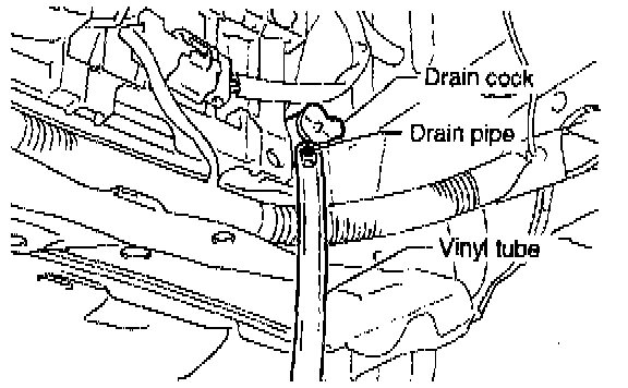 NOTE: Remove radiator cap so that engine coolant will drain faster.