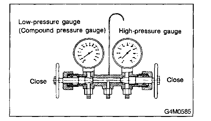 - Connect refrigerant recovery system to manifold gauge set and remove recycle refrigerant from the A/C system.