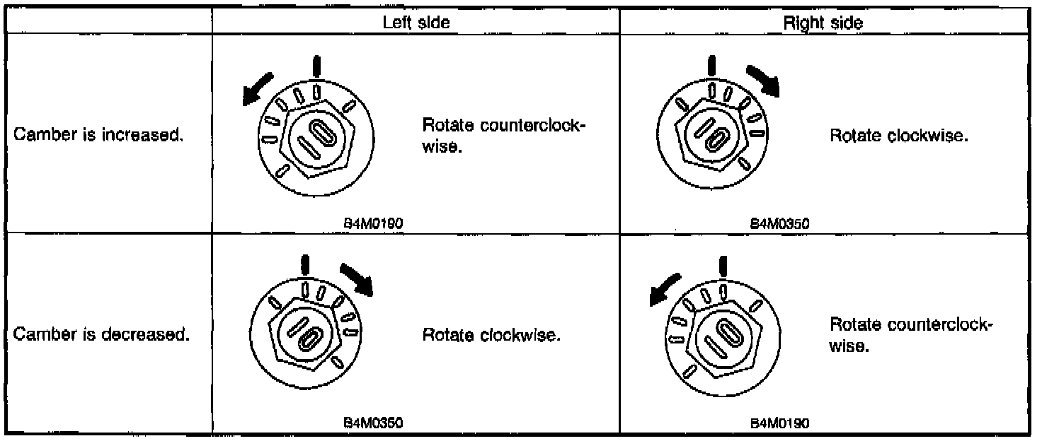 b. When one rear wheel is adjusted in a toe-in direction, adjust the other rear wheel equally in toe-out direction, in order to make thrust angle adjustment.