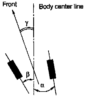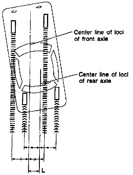 NOTE: Thrust angle refers to a mean value of left and right rear wheel toe angles in relation to vehicle body center line. Vehicle is driven straight in the thrust angle direction while swinging in the oblique direction depending on the degree of the mean thrust angle.