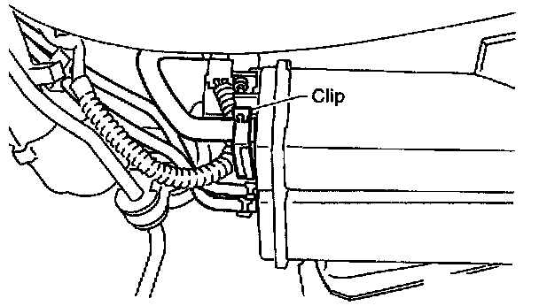 3) Remove clip, and disconnect evaporation hoses from canister.