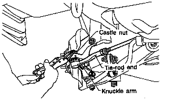 4. Connect tie-rod end and knuckle arm, and tighten with castle nut. Fit cotter pin into the nut and bend the pin to lock.