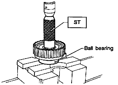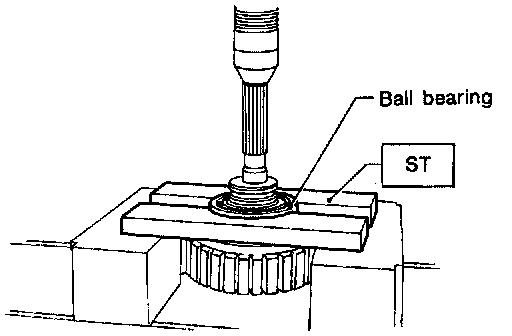 5. Attach ST2 to rear drive shaft. Using ST1, press into place.