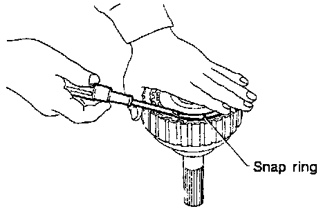 2. Check the snap ring for wear, return spring for permanent set and breakage, and spring retainer for deformation.
