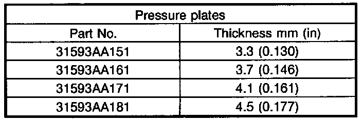 NOTE: Before measuring clearance, place the same thickness of shim on both sides to prevent pressure plate from tilting. If the clearance is not within the specified range, select a proper pressure plate.
