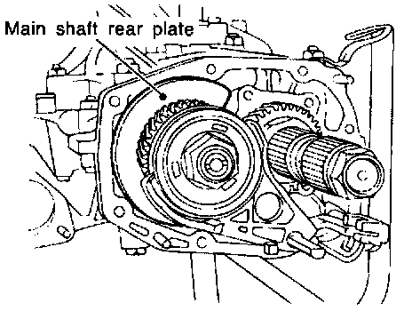 NOTE: Before measuring, tap the end of main shaft with a plastic hammer lightly in order to make the clearance zero between the main case surface and the moving flange of bearing.
