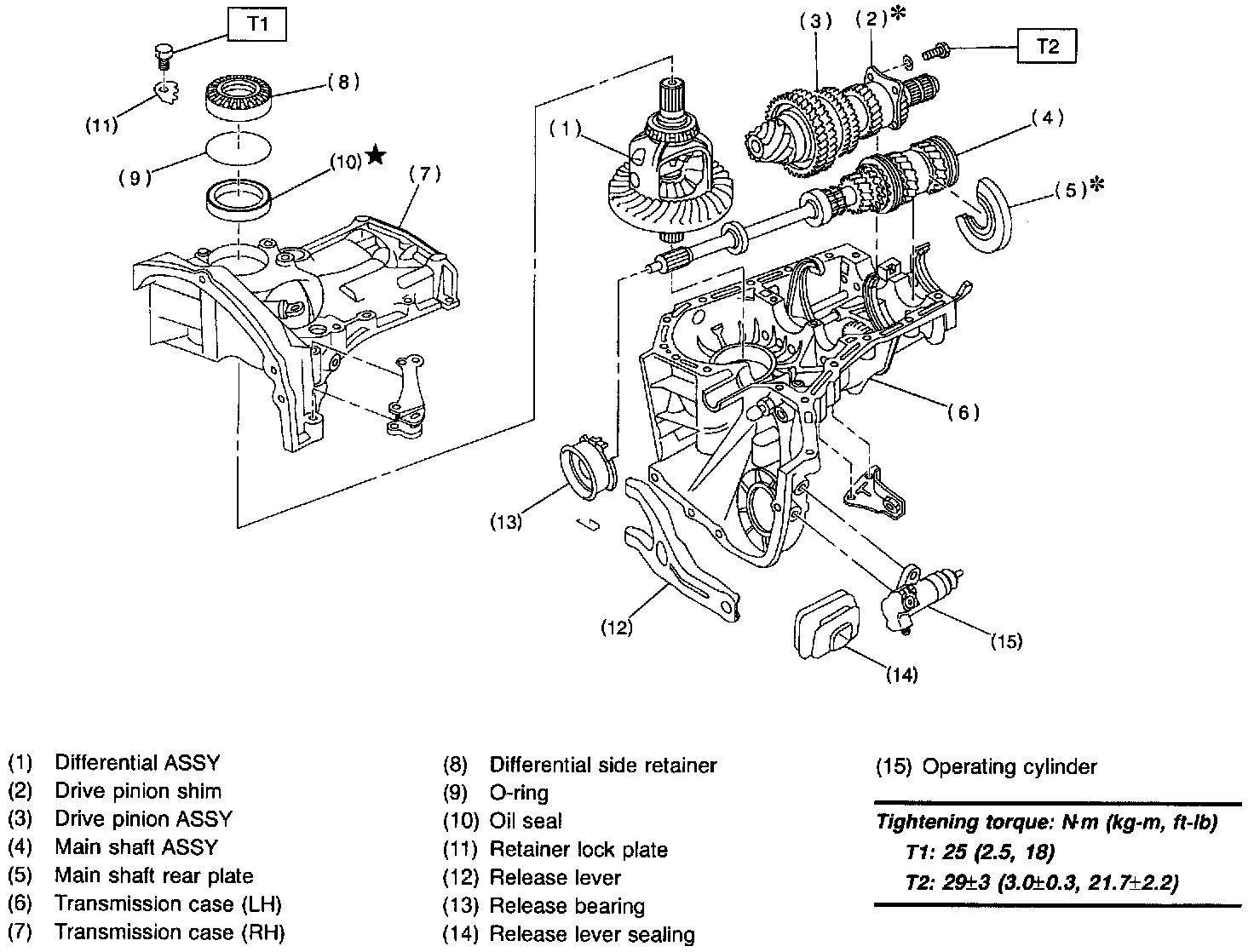 T: 25 ± 3 Nm (2.5 ± 0.3 kg-m, 18.1 ± 2.2 ft. lbs.)