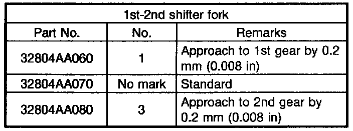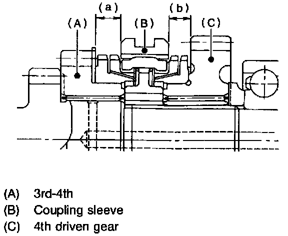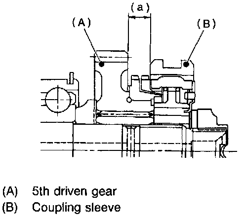 11. Set transmission main shaft assembly and drive pinion shaft assembly in position (so there is no clearance between the two when moved all the way to the front). Select suitable 1st-2nd, 3rd-4th and 5th shifter fork so that coupling sleeve and reverse driven gear are positioned in the center of their synchronizing mechanisms.