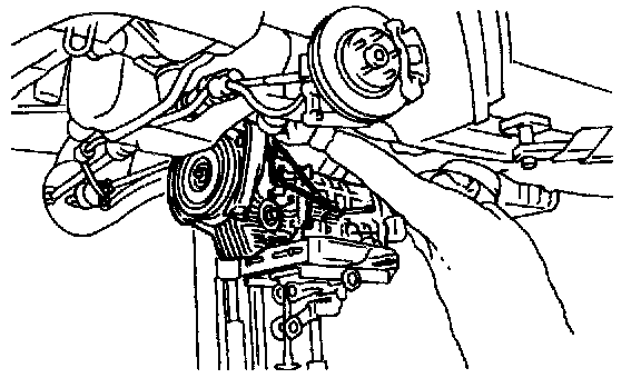 6) Tighten bolt which holds right upper side of transmission to engine.