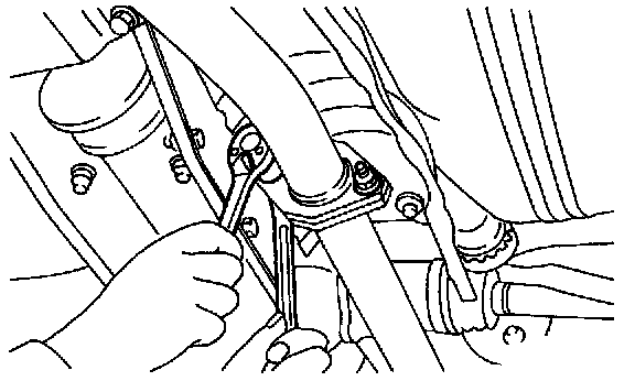 6) Tighten bolt which installs center exhaust pipe to hanger bracket.