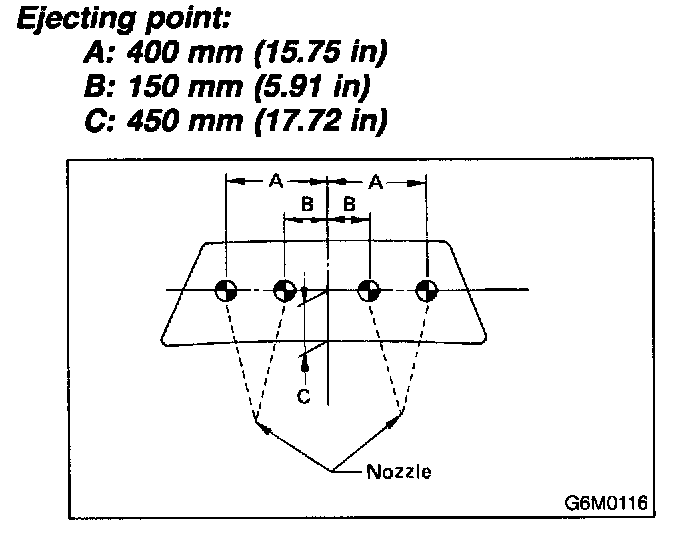 Adjust washer ejecting point on windshield glass as shown in figure when vehicle stops.